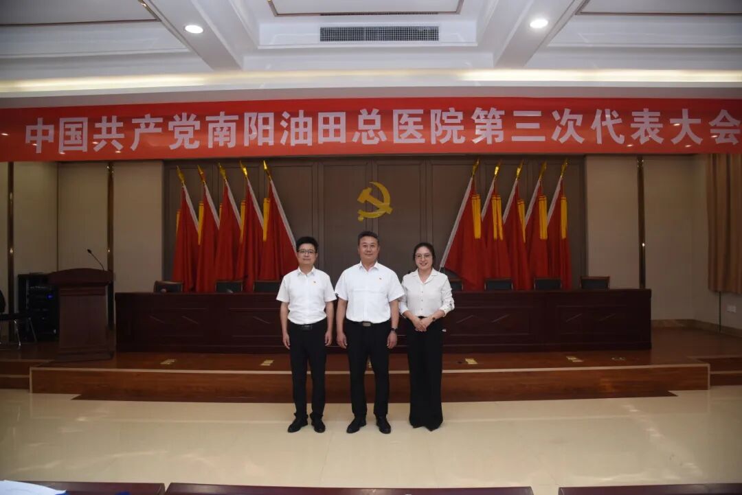 6月12日下午,中共南阳油田总医院第三次党员代表大会在总医院妇幼保健楼12楼1号会议厅顺利召开。此次大会指导思想是坚持以习近平新时代中国特色社会主义思想为指导,坚持把政治标准放在首位,突出优中选优,着力选好书记、配强班子、建强组织、激发活力,切实把两新组织党组织建设成为宣传党的主张、贯彻党的决定、团结动员群众、推动改革发展的坚强战斗堡垒,形成两新组织发展与党的建设同频共振、互促发展的良好局面。官庄工区赤虎街道党工委副书记项喜华、官庄工区赤虎街道组织委员谢慧贤及全体党代表出席了会议。